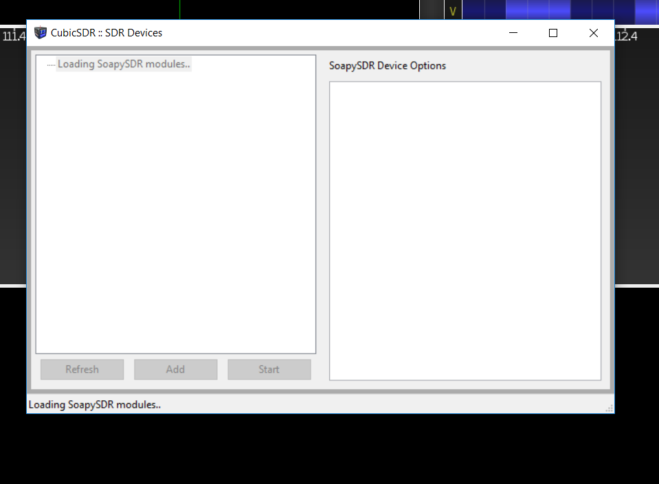 That still looks totally wrong, but surely closer. Looks like maybe a gain is too high but modifying the RFE gain controls doesn’t seem to do much. Ok now maybe I’ll try some other program. I disconnect from the LimeSDR (because otherwise that seems to cause various crashes). I try running GQRX, but that just doesn’t run at all. No errors, just… nothing. Yeay. Quality software.