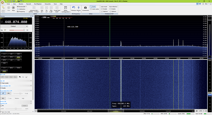 I have found that I can set the center frequency outside a noise zone and tune into it with the NCO and not have the noise there. I am just hooked up through the two USB3 cables so I haven’t tried an external PS, but I will.