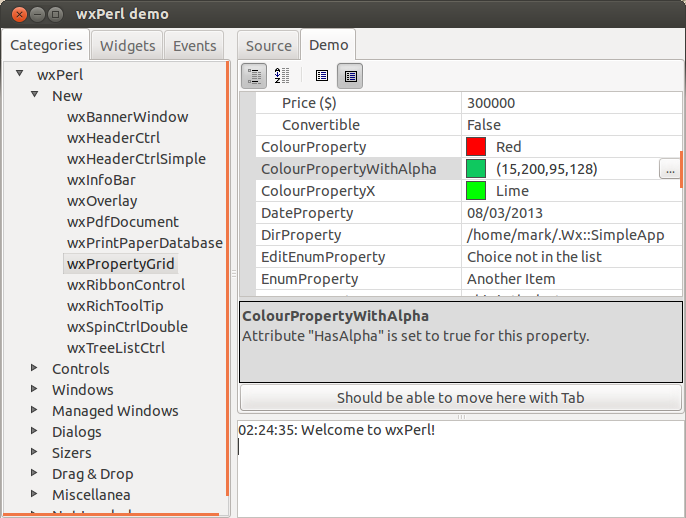 The good thing about the wxPropertyGrid is that it supports different value types like booleans (for checkboxes), numbers, categories, multi choices etc. The bad thing is that it seems it’s not very well supported in wxFormBuilder (the tool which is apparently used to design the GUI).