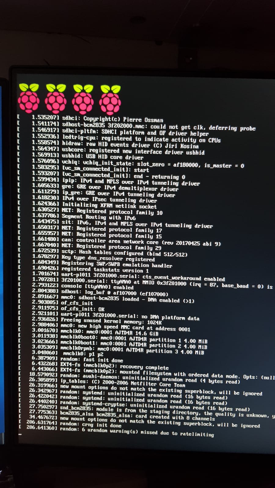 Anyone can help boot to Raspberry? I follow the instruction, but stuck at " Radom: 6 uradom warning(s) missed due ti ratelimiting".