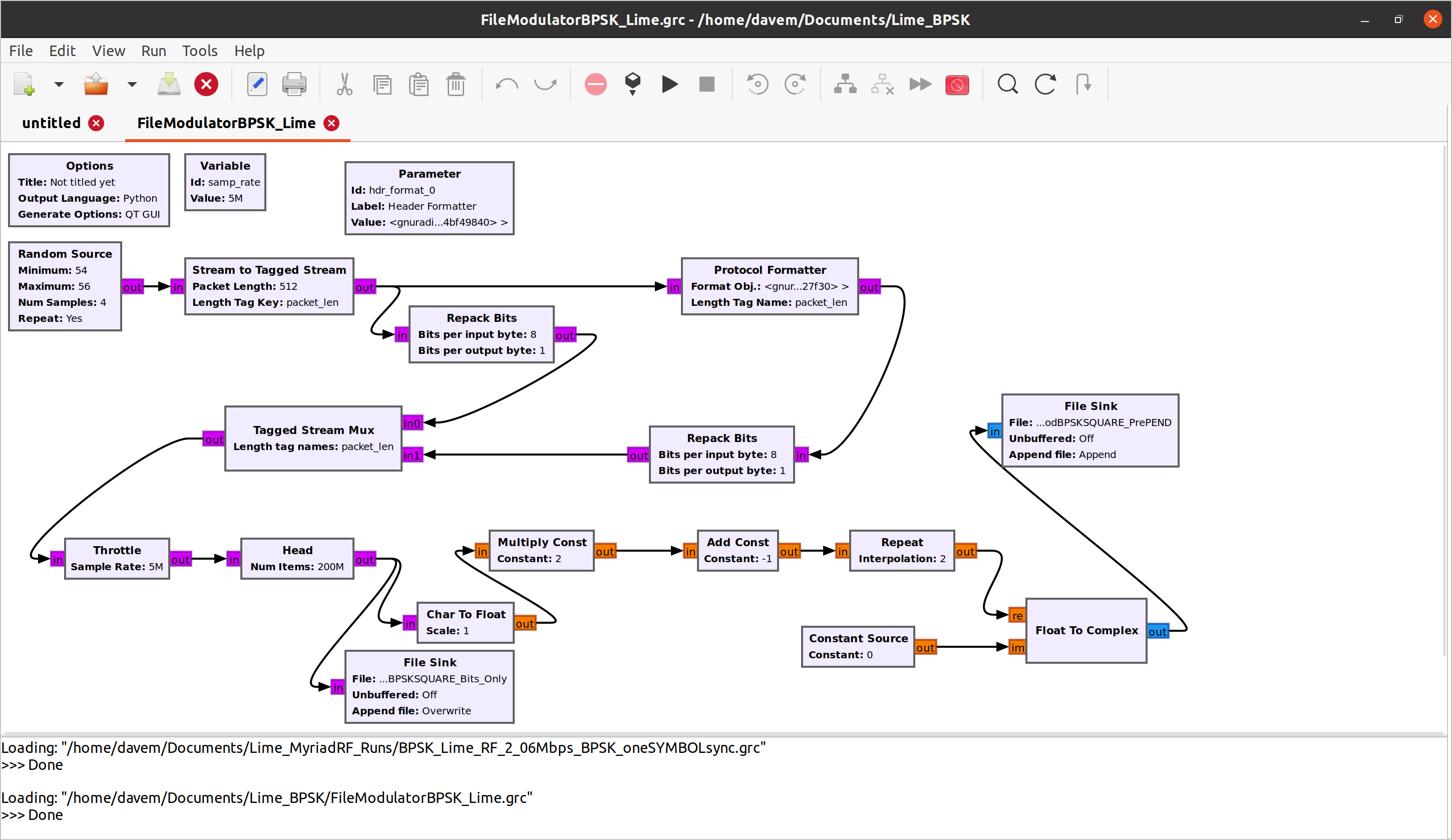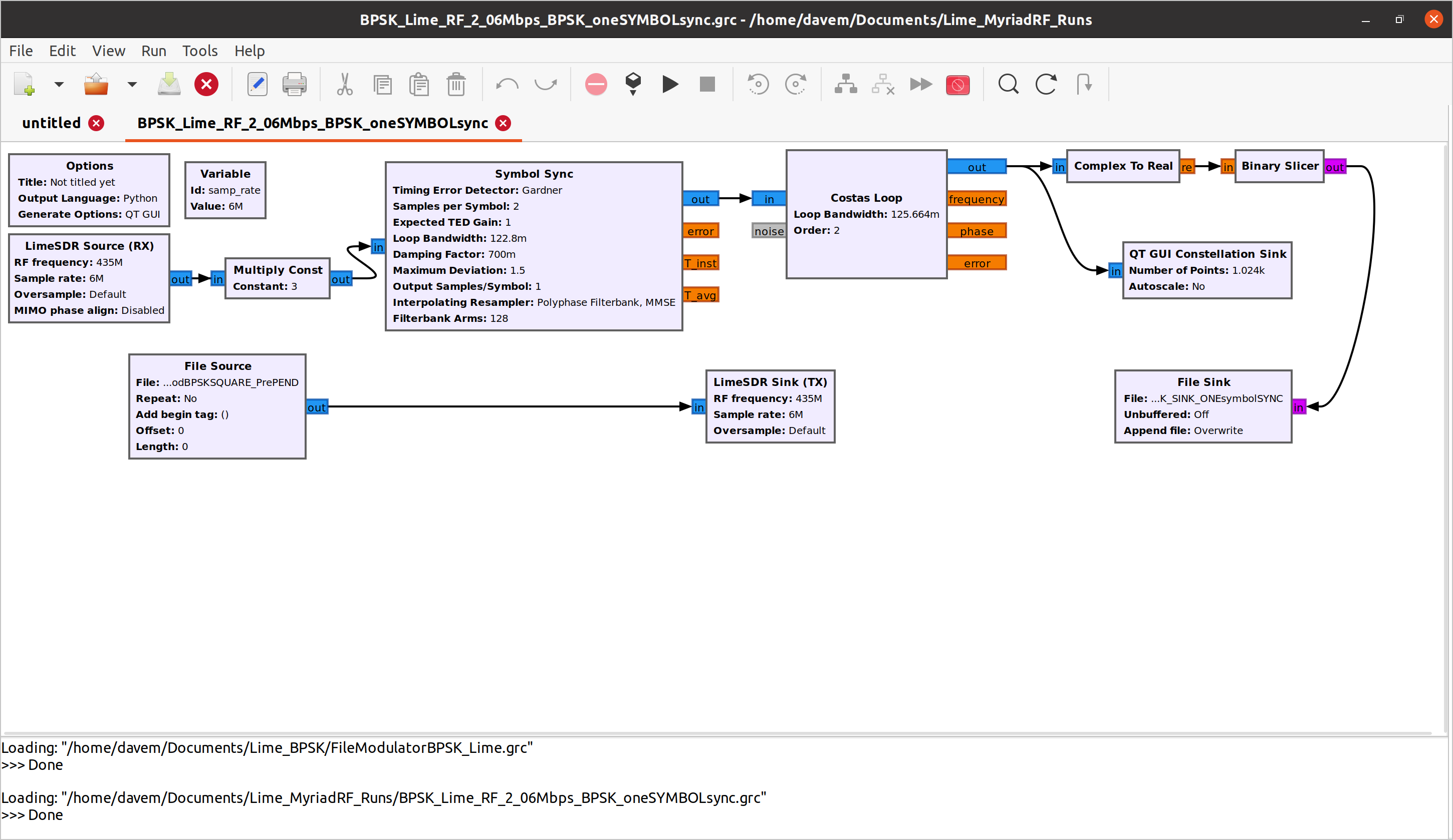Recently I experimented with BPSK based packet data transfer with LimeSDR-mini. I used Gnuradio 3.8 to create the flow graph. It’s working in simulation mode perfectly. But I’m yet to resolve the issue with LimeSDR mini. Looks like some synchronization problem is happening between transmitter and receiver hardware. I’m not an RF engineer, so having some difficulties to pinpoint the problem.