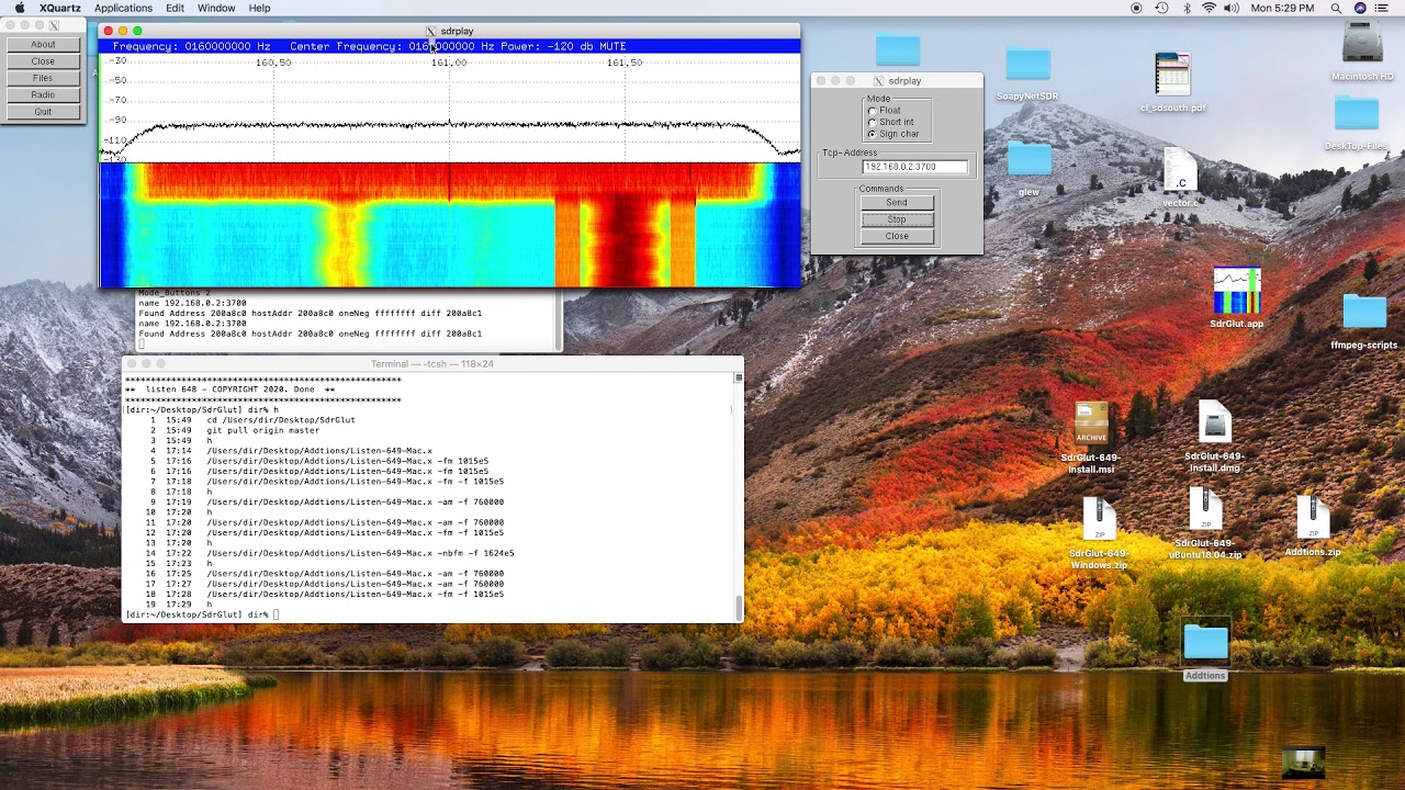 I made an addition to SdrGlut - you can now set the send sample rate and I fixed a bug in the send routine. Between my MacBook pro and the PI 4, I could not get the transmit to work. Between my Windows 7 machine and the PI 4, by setting the send sample rate to 200000 - it actually worked with a little delay in the sound and a little noise. Using my Hackrf One it was consistent, but the LimeSDR mini worked now and then. I think my LimeSDR mini is just about dead - it has been giving me lots of trouble. SoapyRemote, in the transmit mode, has minor problems on some system and major problems others. If you want to try you luck, clone a new version and build SdrGlut from source -
