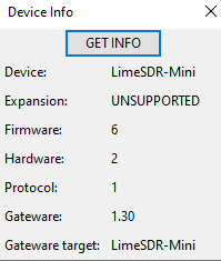 ->Device: LimeSDR Mini, media=USB 2, module=FT601, serial=1D4257CBE603F3, index=0