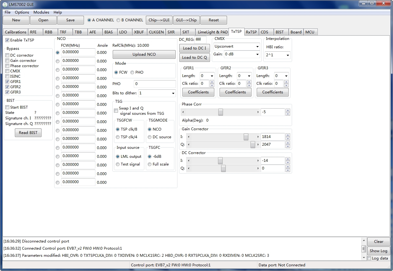 I am using the LMS7002EVB for an RF program but there is a little problem with the GUI operation. When I am going to tune the Tx baseband filter in the TBB tab, it always shows that the CSW_VCO_CGEN = 255 error. The bandwidth I type in is in the range. I try to adjust the VCO PARAM in the CLKGEN tab, but it cannot help. I also check the Rx baseband filter and it’s fine. It can be tuned.